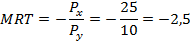 På samme måde findes efterspørgslen for X, når prisen er henholdsvis 10 og 25 (bemærk at MRS er den samme i alle situationer, da nyttefunktionen jo ikke ændres):